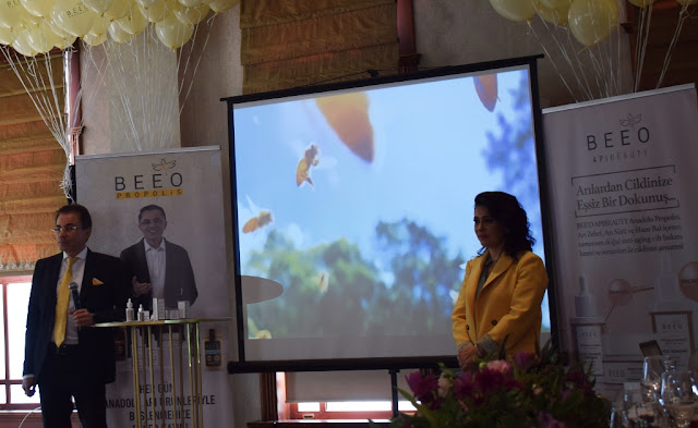 Yüksek Gıda Mühendisi Aslı Elif Tanuğur Samancı’nun kurucularından olduğu ve Genel Müdürlüğünü yaptığı “BEE’O” nun “Api Beauty Yüz Bakım Ürünlerin” lansmanında; Aslı Elif Tanuğur Samancı ve Dr. Ender Saraç tarafından yapılan sağlığa uygun ürünlerin sunumlardan sonra, Arılar sayesinde sadece sağlık için değil, güzellik için de doğanın paha biçilmez armağanlarını aldığımızı öğreniyoruz.