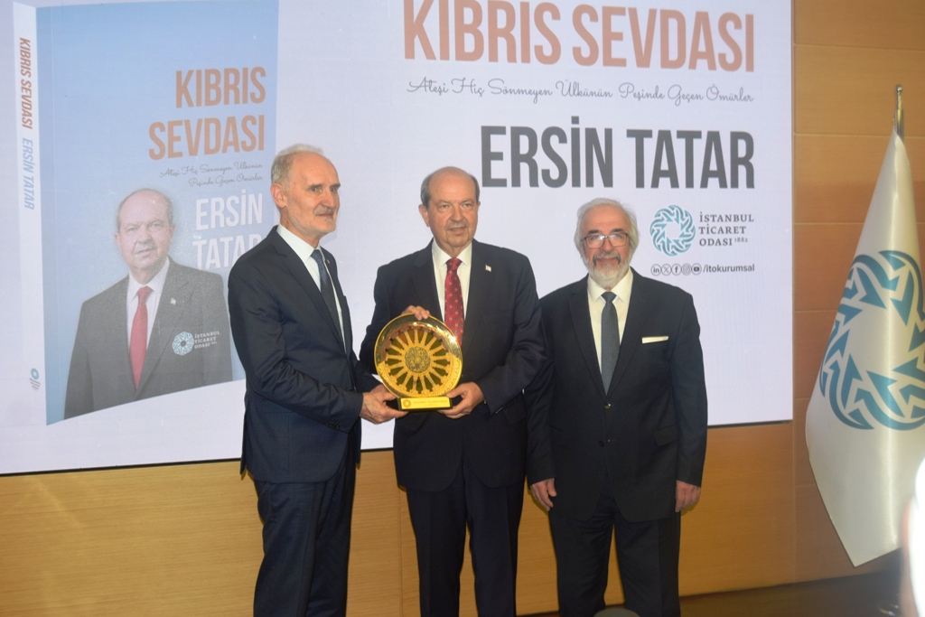 İstanbul Ticaret Odası’nda 22 Temmuz 2025 Salı günü anlam yüklü bir kitap tanıtımı gerçekleşti. Kuzey Kıbrıs Türk Cumhuriyeti Cumhurbaşkanı Ersin Tatar, kendi hayatını ve Kıbrıs davasını anlattığı “Kıbrıs Sevdası” isimli kitabının tanıtımı vesilesiyle, Türk iş dünyasının kalbi İstanbul’da, İTO’nun ev sahipliğinde önemli mesajlar verdi.