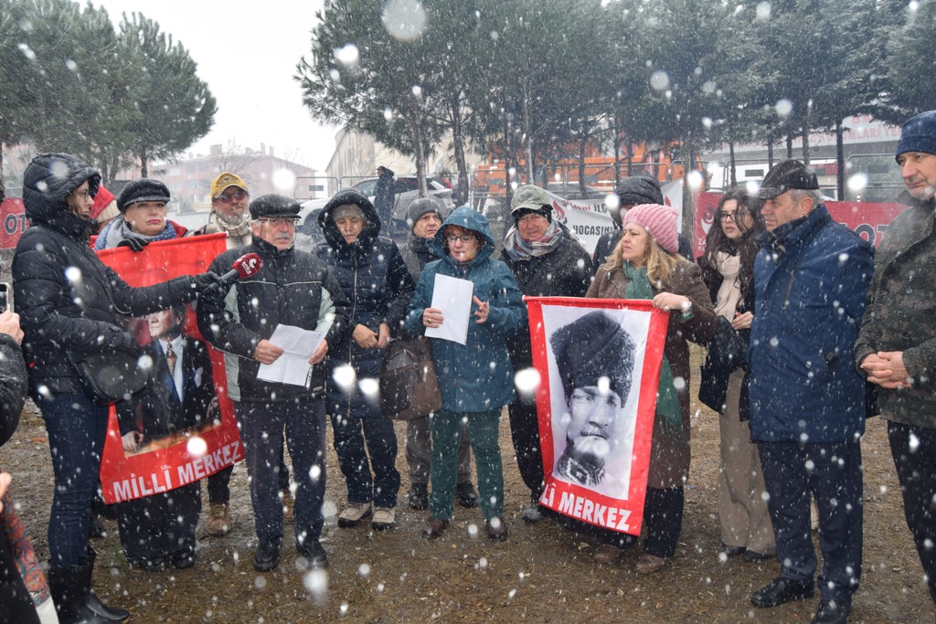 Nöbet alanında kurulan Zafer Partisi Otağı’nda, BAT Sözcüsü Dr. Sibel Zeren ve Milli Merkez Başkanı Hüsamettin Cindoruk adına Milli merkez genel sekreteri Haluk Dural tarafından basın açıklamaları yapıldı.